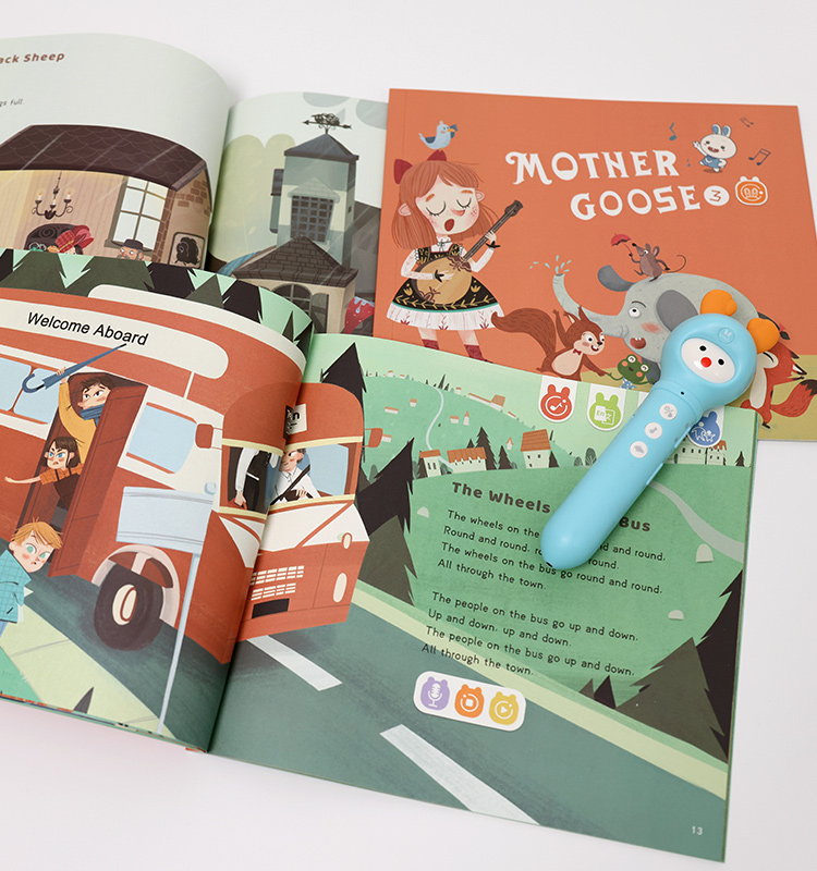 Od chwili pierwszego uruchomienia nasza pociecha zostaje zaproszone do kolorowego świata piosenek, rymowanek i zagadek. Dołączone do zestawu trzy interaktywne książeczki z rymowankami pełne są angielskich utworów i pytań ukrytych na każdej stronie. Wystarczy dotknąć piórem wybrane miejsce, by usłyszeć nagranie – czyste, wyraźne i stworzone specjalnie z myślą o najmłodszych uczniach.