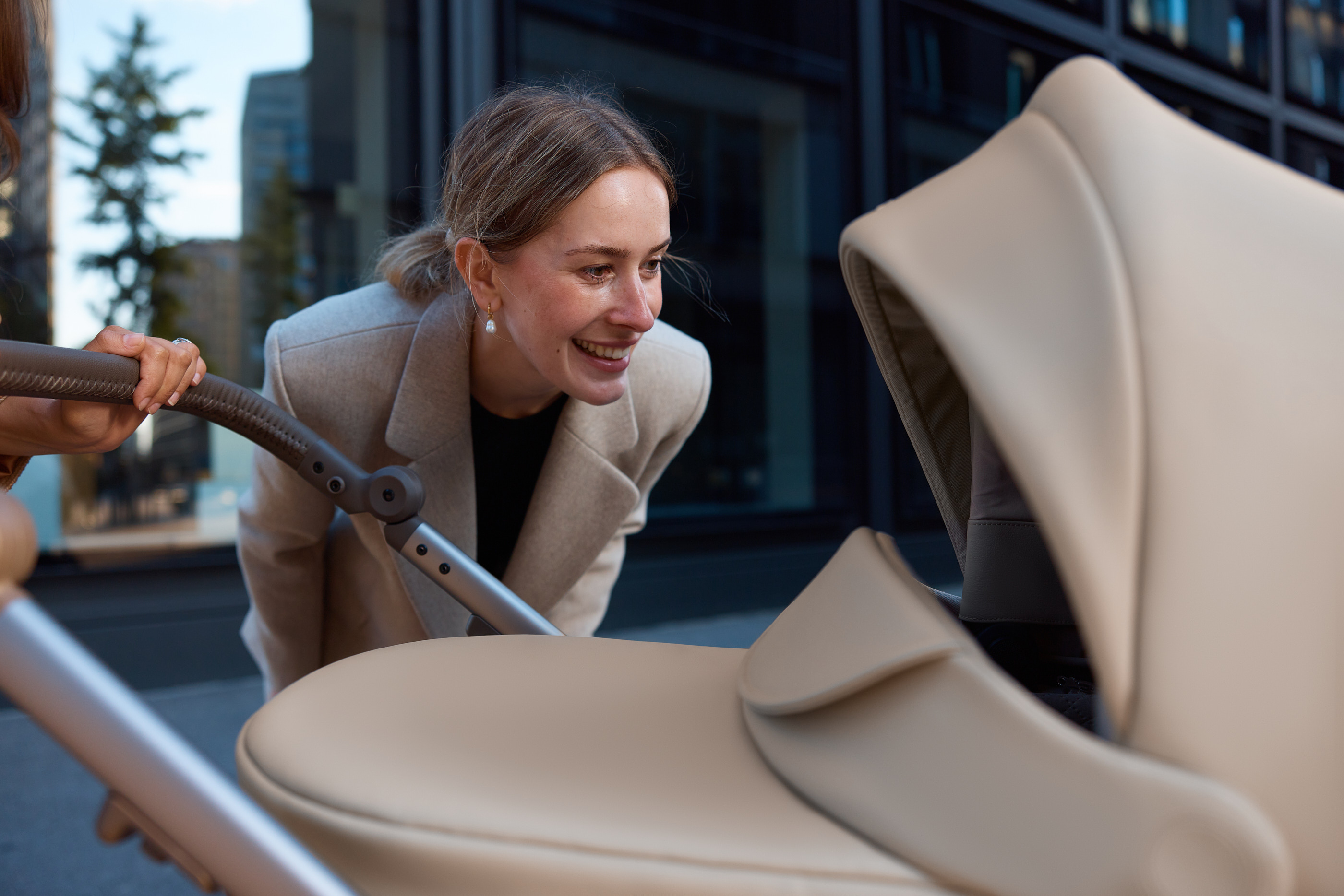 Wyjątkowy atut wózka spacerowego to możliwość regulacji wysokości gondoli i siedziska. Dołączone adaptery pozwalają podnieść je aż o 8,5 cm, dzięki czemu Anex Eli prowadzi się wygodnie osobom o różnym wzroście i ułatwia codzienne czynności, takie jak wkładanie czy wyjmowanie dziecka. Regulowana rączka z eleganckiej ekoskóry oferuje trzy ergonomiczne pozycje, zapewniając komfort prowadzenia niezależnie od sytuacji.
