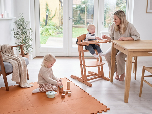 DANCHAIR został zaprojektowany z myślą o wygodzie rodziców. Jego powierzchnia jest łatwa do utrzymania w czystości – wystarczy przetarcie wilgotną ściereczką, aby usunąć zabrudzenia. Kształt krzesełka umożliwia wsunięcie go pod stół, co pozwala zaoszczędzić miejsce w kuchni lub jadalni. To idealne rozwiązanie zarówno do małych, jak i większych przestrzeni.