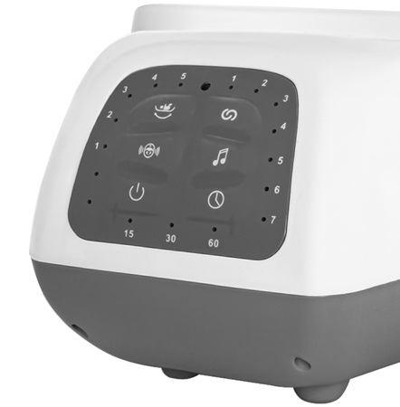 Carrello Bloom 3w1 został wyposażony w elementy, które tworzą przyjazne środowisko do snu. Delikatne światło projektora z trzema trybami oświetlenia wprowadza spokojną atmosferę, a dwa tryby wibracji dodatkowo pomagają wyciszyć dziecko.