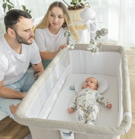 To idealny wybór dla rodziców, którzy od pierwszych dni życia dziecka chcą mieć je blisko siebie, bez rezygnowania z komfortu i bezpieczeństwa snu. Sprawdzi się szczególnie u osób, które cenią nowoczesne rozwiązania ułatwiające codzienną opiekę, zwłaszcza w nocy. To model stworzony dla rodzin szukających wielofunkcyjnego łóżeczka, które nie tylko służy do spania, ale także aktywnie pomaga w usypianiu i uspokajaniu malucha. Będzie doskonały zarówno do mieszkań, gdzie liczy się mobilność i oszczędność miejsca, jak i dla rodziców, którzy chcą ograniczyć konieczność wstawania w nocy.