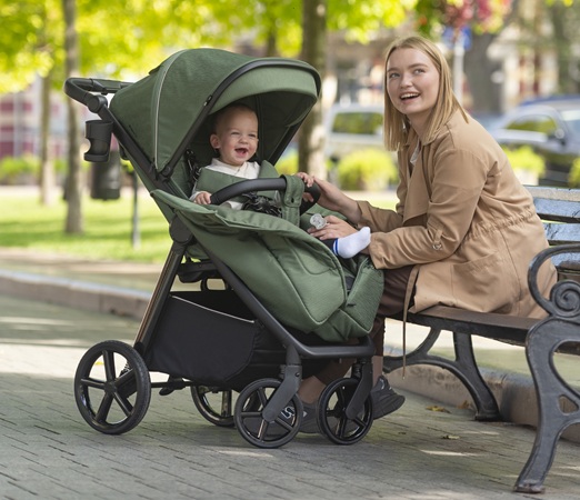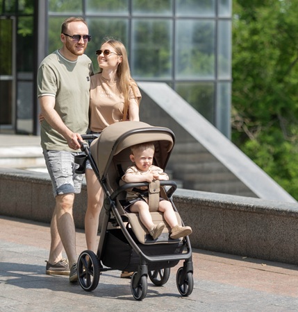 Największym atutem tego modelu jest jego wszechstronność – sprawdza się o każdej porze roku i w różnych warunkach pogodowych. Wysokiej jakości materiały z ochroną UV oraz powłoką hydrofobową skutecznie zabezpieczają dziecko przed słońcem i deszczem, a ocieplane okrycie na nóżki zwiększa komfort w chłodniejsze dni. Dużą zaletą jest również płynna jazda, możliwa dzięki regulowanej amortyzacji sprężynowej, która dobrze radzi sobie z nierównościami.