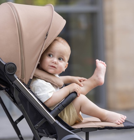 Siedzisko wózka spacerowego zostało zaprojektowane tak, aby zapewnić maksymalną wygodę zarówno podczas aktywnego siedzenia, jak i odpoczynku. Płynna i cicha regulacja oparcia umożliwia łatwe ustawienie najwygodniejszej pozycji, bez budzenia dziecka w czasie drzemki.