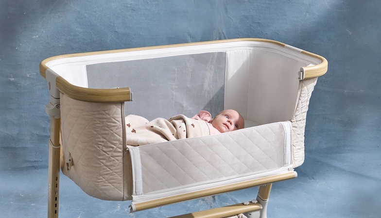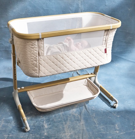 Lekka konstrukcja sprawia, że łóżeczko można bez trudu przemieszczać po domu, dzięki czemu dziecko zawsze pozostaje w zasięgu wzroku. U podstawy znajduje się pojemny kosz, który pomieści wszystkie niezbędne akcesoria – od pieluszek po ulubione zabawki.
