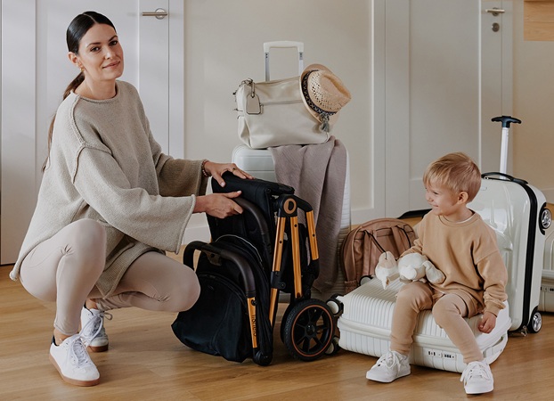 Po złożeniu Lionelo Cloe wózek osiąga niezwykle kompaktowe wymiary. Dołączona torba transportowa oraz pasek do przenoszenia na ramię pozwalają wygodnie przenieść go po schodach, wnieść do pociągu lub zabrać na pokład samolotu. To idealny wybór dla rodzin, które lubią mieć wszystko pod kontrolą – zawsze i wszędzie.
