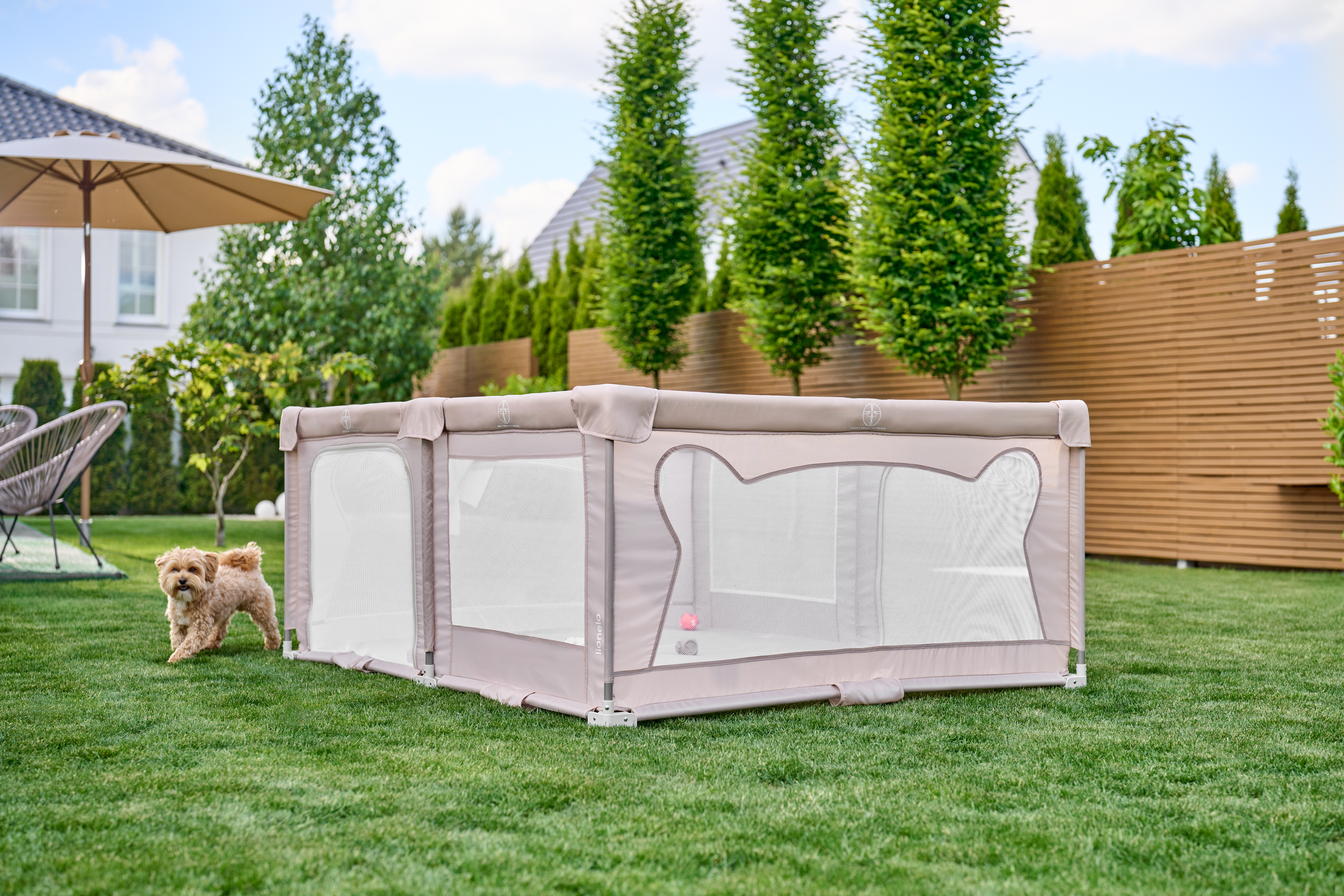 Z myślą o aktywności i komforcie dziecka zaprojektowano wyjątkowo duży obszar – 151 x 185 cm. To miejsce, w którym maluszek może bezpiecznie bawić się swoimi ulubionymi zabawkami, uczyć się wstawać, raczkować czy nawet chodzić, odpoczywać, a dzięki dwóm bocznym wejściom otwieranym na zamek starszaki mają możliwość samodzielnego wchodzenia i wychodzienia z kojca. Rodzice mogą włożyć do środka matę edykacyjną, a nawet spędzać tam czas razem ze swoją pociechą. Wejścia zamykamy jednym ruchem suwaka, tworząc bezpieczną przestrzeń do codziennej aktywności.