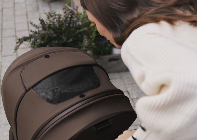 Przestronna gondola została zaprojektowana tak, aby zapewnić maksymalną wygodę już od pierwszych dni życia. Delikatne pochylenie o 3° w stronę rodzica pomaga ograniczyć ryzyko refluksu, a panoramiczna wentylacja 3D w połączeniu z kanałami AiryDots w materacyku gwarantuje optymalną cyrkulację powietrza nawet w cieplejsze dni.