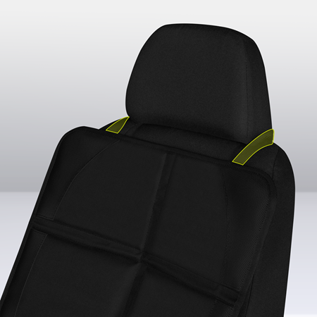 Regulowany pas o długości 57 cm, wyposażony w solidną klamrę, pozwala przymocować matę do zagłówka fotela. Takie rozwiązanie zapewnia szybkie i intuicyjne zakładanie oraz dopasowanie do różnych modeli aut. Produkt sprawdzi się zarówno w mniejszych samochodach miejskich, jak i w przestronnych SUV-ach.