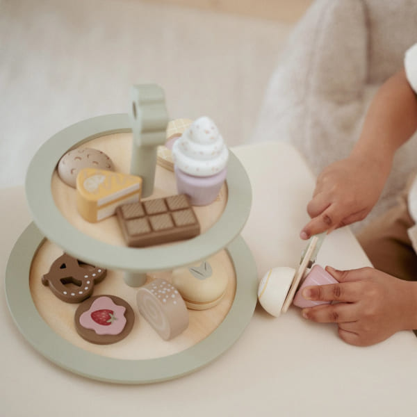 Zamień zabawę w eleganckie przyjęcie pełne wyobraźni dzięki piętrowej, drewnianej paterze na słodkości marki Little Dutch. To wyjątkowa zabawka, która zachwyca starannym wykonaniem, subtelną kolorystyką i ponadczasowym stylem, idealnie wpisującym się w estetykę dziecięcego pokoju. Patera została zaprojektowana z myślą o małych miłośnikach zabawy w dom, kawiarnię lub herbaciarnię i stanowi doskonałe uzupełnienie kuchni lub zestawów do odgrywania ról.