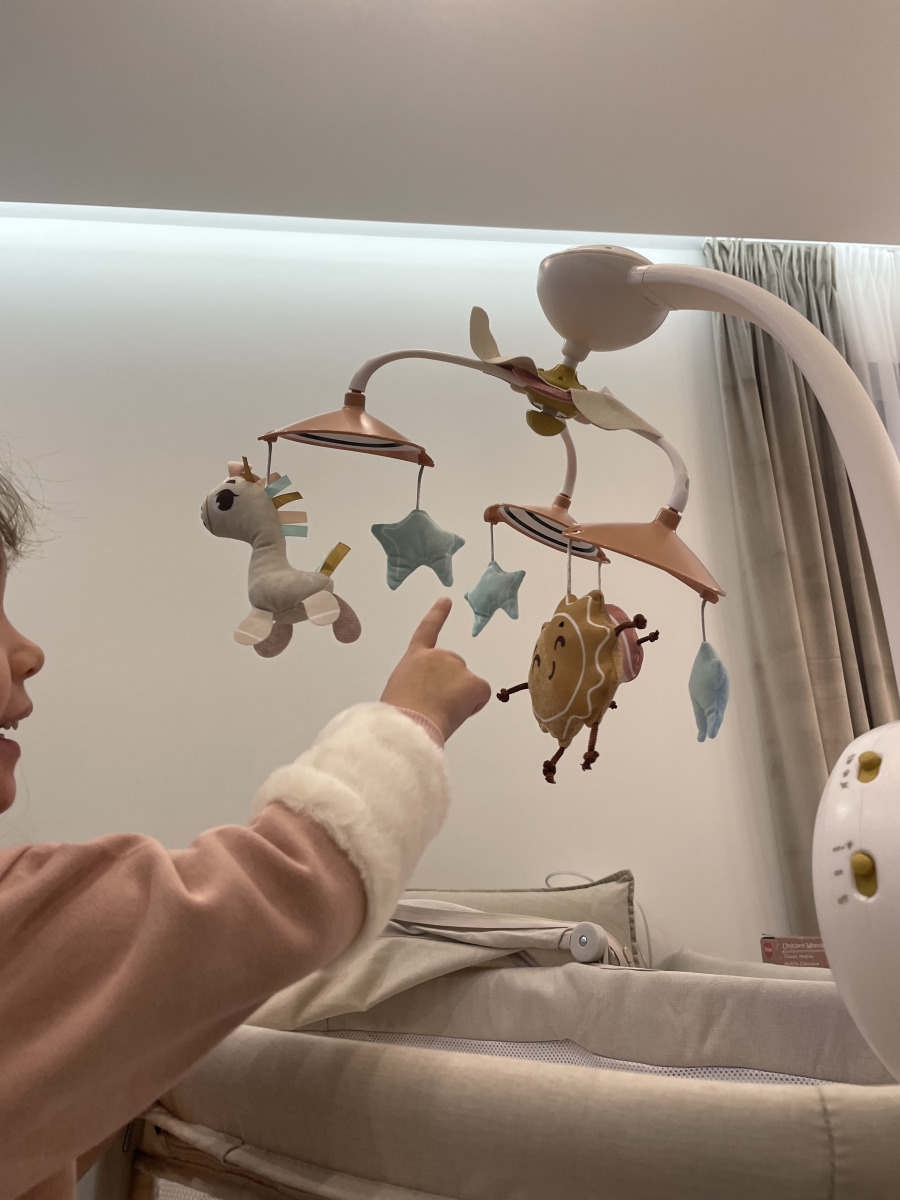 Ta niezwykła karuzela to nie tylko piękna dekoracja – to pełne magii połączenie ruchu, dźwięku i światła, które angażuje zmysły malucha, uspokaja go i pomaga w rutynowym przejściu od zabawy do odpoczynku.