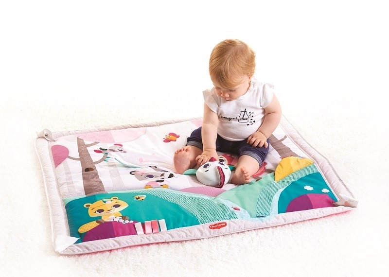 Mata firmy Tiny Love doskonale sprawdza się w różnych etapach rozwoju maluszka. Leżenie na plecach umożliwia obserwowanie zawieszek i ćwiczenie koordynacji ręka–oko, czas na brzuszku wzmacnia mięśnie szyi, pleców i ramion, przygotowując do kolejnych etapów rozwoju, a pozycja siedząca pozwala starszym dzieciom na samodzielną, kreatywną zabawę i manipulowanie zabawkami o bardziej złożonych funkcjach. Prosty mechanizm zmiany ułożenia pałąków sprawia, że w kilka chwil można dostosować matę do aktualnej aktywności niemowlęcia.